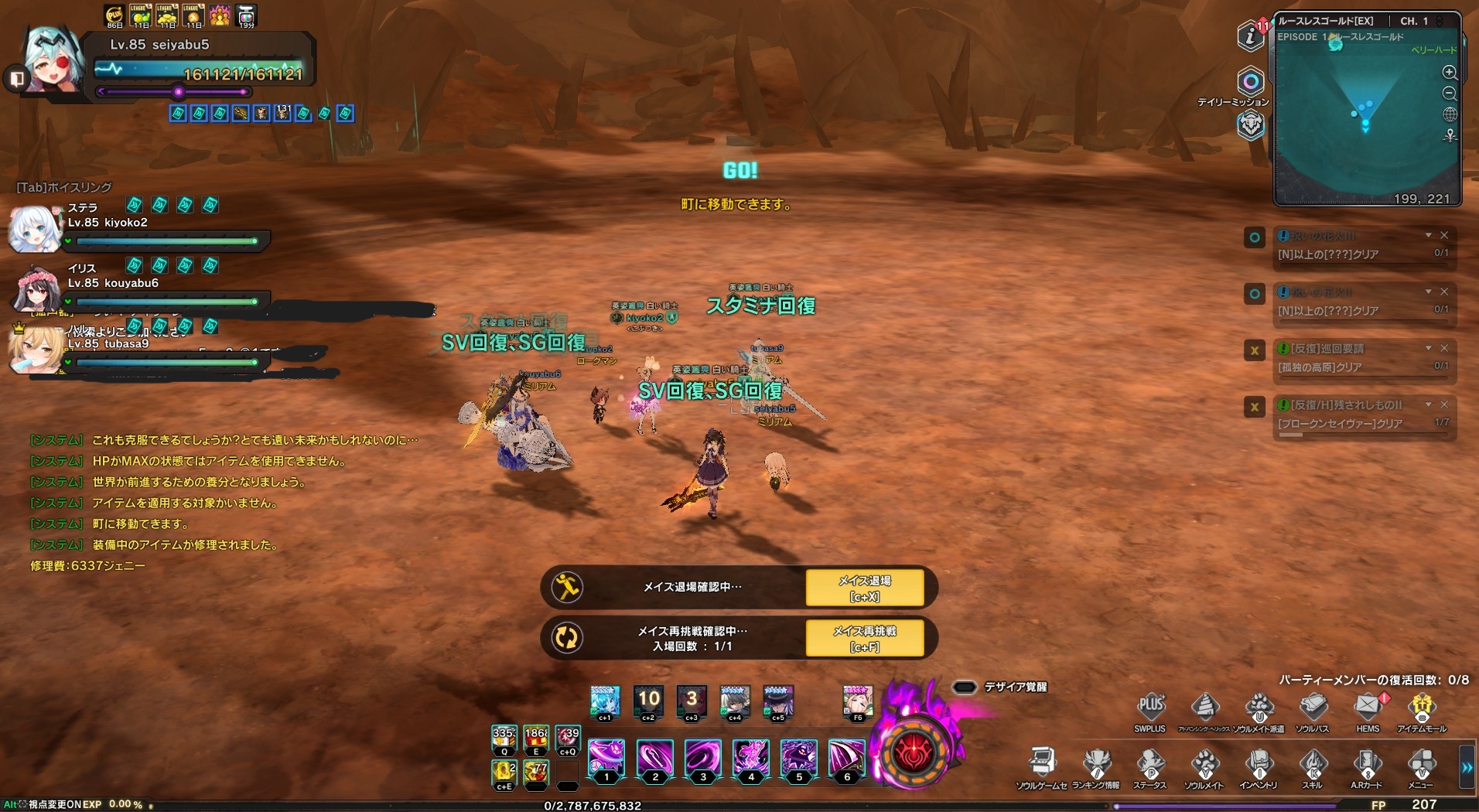 3.HP40ゲージ:装置を4つ出現します ⚡の攻撃を食らうと反転または気絶で動けなくなるため、3秒無敵のアンプル使ったりして潜り抜けて 最低でも、二人以上装置を起動お勧めします(最初にくぐり抜けた人が装置を起動するのが安心かなと思います時間が限られているので)